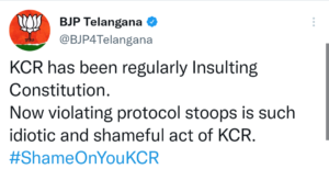 शनिवार को हैदराबाद में पीएम मोदी की यात्रा से पहले, जहां वह हैदराबाद के पास 11 वीं शताब्दी के वैष्णव संत श्री रामानुजाचार्य की प्रतिमा का अनावरण करने वाले हैं, केसीआर के कार्यालय ने यह स्पष्ट कर दिया था कि केसीआर पीएम मोदी को प्राप्त करने और विदा करने के लिए नहीं होंगे। मुख्यमंत्री कार्यालय (सीएमओ) द्वारा जारी एक बयान में कहा गया है कि राज्य के पशुपालन, मत्स्य पालन, डेयरी विकास और छायांकन मंत्री तलसानी श्रीनिवास यादव को प्रधानमंत्री के आगमन और प्रस्थान पर प्राप्त करने और विदा करने के लिए प्रतीक्षारत मंत्री के रूप में नामित किया गया है।