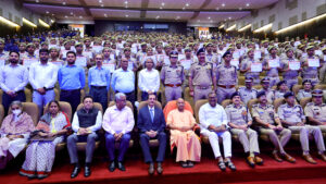 उत्तर प्रदेश , लखनऊ – उत्तर प्रदेश के मुख्यमंत्री योगी आदित्यनाथ ने आज यहां लोक भवन में राष्ट्रीय रक्षा विश्वविद्यालय द्वारा आयोजित अमृत कौशल विकास योजना-सुरक्षार्थ, सुरक्षा गार्ड प्रशिक्षण के समापन कार्यक्रम को सम्बोधित किया।