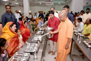मुख्यमंत्री जी ने अन्नपूर्णा भोजनालय के शुभारम्भ के लिए श्रीकृष्ण जन्माष्टमी का पावन अवसर चुनने के लिए उ0प्र0 ब्रज तीर्थ विकास परिषद तथा आचार्य विजय कौशल के प्रति आभार व्यक्त करते हुए कहा कि ‘कृष्णं वन्दे जगद्गुरुम्’ उ0प्र0 ब्रज तीर्थ विकास परिषद के ‘लोगो’ का अंग है।लगभग 05 करोड़ रुपये की लागत से वृन्दावन में निर्मित अन्नपूर्णा भवन का उद्घाटन किया। उन्होंने अन्नपूर्णा भवन का निरीक्षण किया, किचन में जाकर भोजन तैयार करने के संसाधनों का अवलोकन भी किया। मुख्यमंत्री जी ने श्रद्धालुओं को भोजन परोसा तथा स्वयं भी उनके साथ भोजन ग्रहण किया। इसी भावना के साथ ब्रज क्षेत्र की आध्यात्मिक एवं सांस्कृतिक धरोहर को अक्षुण्ण बनाये रखने के लिए उ0प्र0 ब्रज तीर्थ विकास परिषद गठन का किया गया। यह परिषद जनप्रतिनिधियों के साथ मिलकर यहां के समग्र विकास की कार्य योजना लेकर कार्य कर रही है।