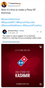 कश्मीर पर ‘अनचाहे सोशल मीडिया पोस्ट’ पर डोमिनोज ने मांगी माफी