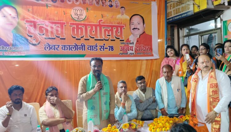ट्रिपल इंजन की सरकार होती है तो विकास के नए आयाम स्थापित होते हैं. मुकेश शर्मा ने कहा लखनऊ के सांसद राजनाथ ने 2014 के बाद लखनऊ के विकास का खाका खींचा है. 104 किलोमीटर की रिंग रोड अति शीघ्र जनता को समर्पित होगी. ट्रैफिक व्यवस्था को दुरुस्त करने के लिए सांसद जी ने 19 फूलों को स्वीकृत कराया. अंजली श्रीवास्तव ने कहा भारतीय जनता पार्टी के सभी विधायक भारी बहुमत से जीतेगे. पार्षद प्रत्याशी अजय दीक्षित ने कहा भारतीय जनता पार्टी नेतृत्व ने जो मुझ पर विश्वास किया है मैं उस विश्वास पर खरा उतरूंगा. कार्यक्रम में भाजपा नेता संतोष श्रीवास्तव मंडल के महामंत्री वार्ड अध्यक्ष वह भारी संख्या में कार्यकर्ता उपस्थित रहे.