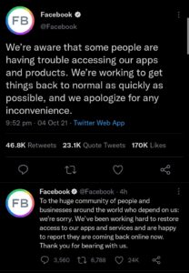 संपर्क करने पर, फेसबुक के प्रवक्ता ने एक बयान में कहा, “हम जानते हैं कि कुछ लोगों को हमारे ऐप्स और उत्पादों तक पहुंचने में परेशानी हो रही है। हम चीजों को जल्द से जल्द सामान्य करने के लिए काम कर रहे हैं, और किसी भी असुविधा के लिए हमें खेद है।”