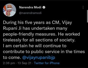 पटेल को बधाई देने के अलावा, मोदी ने गुजरात के पूर्व मुख्यमंत्री विजय रूपानी की “समाज के सभी वर्गों के लिए अथक रूप से काम करने” और “लोगों के अनुकूल उपाय” करने के लिए प्रशंसा की।