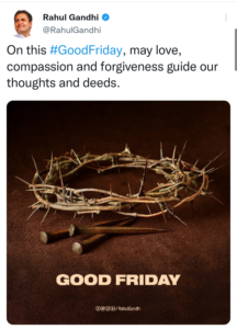 कई अन्य राजनेताओं ने ट्विटर पर यीशु मसीह को सूली पर चढ़ाए जाने की स्मृति में लिया। कांग्रेस नेता राहुल गांधी ने लिखा, “इस गुड फ्राइडे पर प्यार, करुणा और क्षमा हमारे विचारों और कार्यों का मार्गदर्शन करें।”