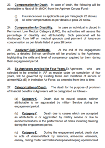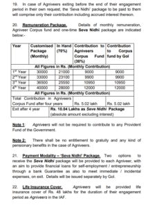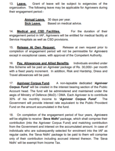दस्तावेज़ में कहा गया है, “चार साल की अवधि के बाद, प्रत्येक अग्निवीर भारतीय वायुसेना द्वारा घोषित संगठनात्मक आवश्यकताओं और नीतियों के आधार पर समाज में वापस जाएगा।”