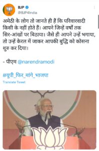 प्रधान मंत्री ने कांग्रेस और समाजवादी पार्टी (जिसे कई लोग भाजपा के लिए सबसे बड़ी चुनौती के रूप में देखते हैं) पर यह कहते हुए उपहास किया कि उनके द्वारा की जाने वाली ‘पारिवारिक राजनीति’ देश को नुकसान पहुंचा रही है।
