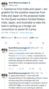 श्रीलंका के पीएम ने ‘कठिन दौर, में समाधान के बीच समर्थन के लिए भारत को किया धन्यवाद