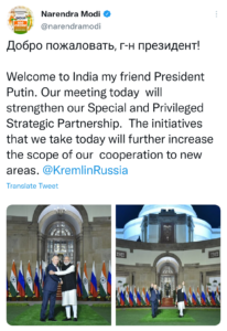 अंतर्राष्ट्रीय गठबंधन : पीएम मोदी ने रूस के पुतिन का स्वागत किया