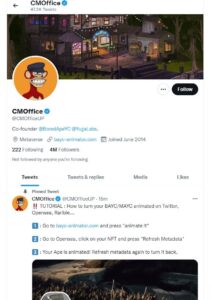 हैक होने के बाद सीएमओ अकाउंट से ‘हाउ टू टर्न योर बीएवाईसी/एमएवाईसी एनिमेटेड ऑन ट्विटर’ नामक ट्यूटोरियल पर आधारित एक पोस्ट पोस्ट की गई थी। इसके अलावा, यूपी सीएमओ खाते पर प्रोफाइल तस्वीर को “बोर एप एनएफटी” की छवि से बदल दिया गया था।