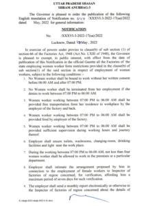 उत्तर प्रदेश – उत्तर प्रदेश सरकार ने शनिवार को कहा कि राज्य में कोई भी महिला कार्यकर्ता उनकी सहमति के बिना सुबह 6 बजे से पहले और शाम 7 बजे के बाद काम करने के लिए बाध्य नहीं है। इस कदम का उद्देश्य कार्यस्थलों पर महिलाओं की सुरक्षा में सुधार लाना है।